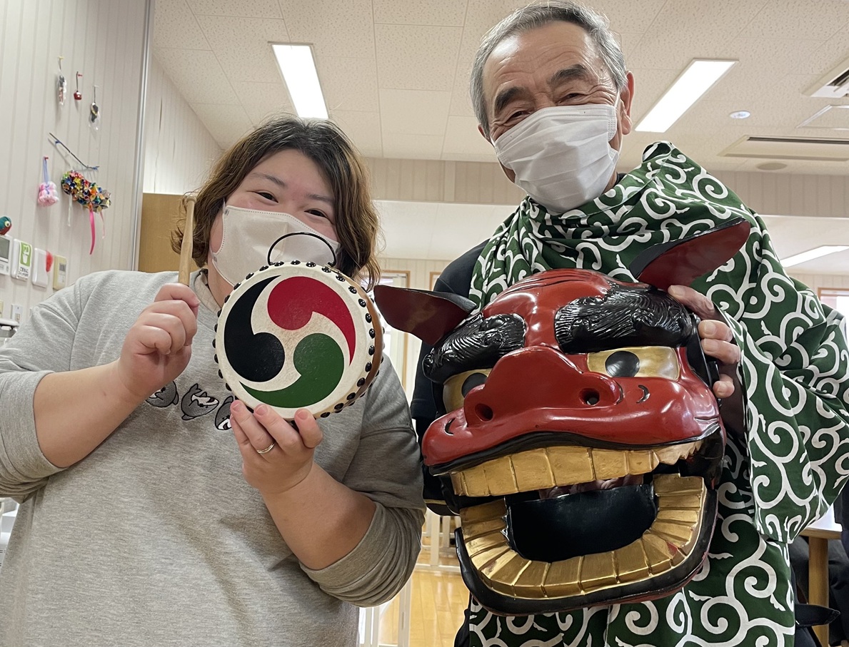 1月5日から1月9日までの期間、デイサービスでは職員による獅子舞のイベントを行いました。太鼓の音に合わせて舞う獅子舞に、利用者の皆様は自然と笑顔になり、明るい雰囲気に包まれました。